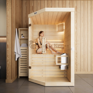 Это специально оборудованная готовая деревянная кабина для сухого и влажного парения. Электропечь нагревает пространство внутри и позволяет сбрызгивать камни водой, слегка увлажняя воздух. Такая процедура позволяет избежать перегрева. Каркас сауны выполнен из массива кедра, снаружи и внутри обшит липовой вагонкой сорта «Экстра» и имеет теплоизоляционный слой. Также двухуровневый полок идёт из кедра для обогащения внутри кабины полезными фитонцидами, а в сочетании с противовирусными свойствами липы сауна становится настоящим источником здоровья.