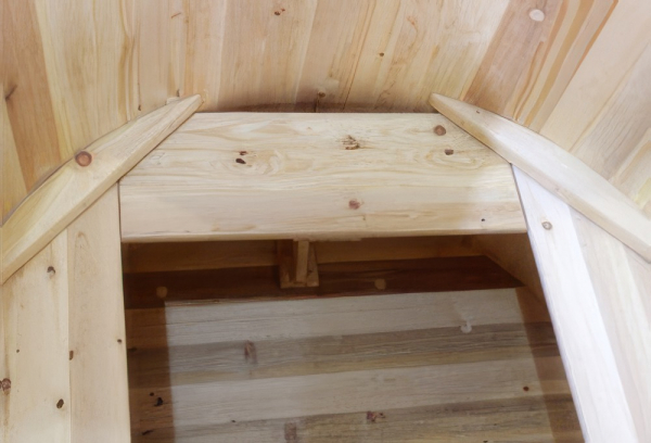 Полка крепится к борту с внутренней части купели. Будет удобна для напитков, посуды, или любых других не очень больших, но нужных вещей.
