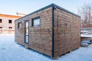 Это утепленный домик прямоугольной формы с панорамным окном и двумя помещениями: жилой комнатой и санузлом с душевой зоной. Может быть изготовлен по готовым стандартам или вашим индивидуальным размерам. Современные материалы, используемые при проектировании, отличаются экологичностью и прочностью.