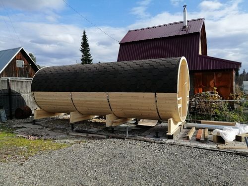 Нашел в интернете такую баню-бочку, решил рискнуть и заказать аж шестиметровую баню. Семья у нас большая, народу много, часто приезжают родственники в гости с ночевкой, поэтому большая баня для нас - это просто необходимость, а не прихоть. Баню изготовили в течение трех недель, потом доставка на место. Собирал сам с братом, примерно пару выходных ушло у нас на сборку. Возможно, профессионал и собрал бы за день, но мы так быстро не умеем работать))) Поэтому не рассчитывайте, что при самостоятельной сборке у вас уйдет день))) Баня получилась шикарная, внутри и снаружи, просто сказка! Топится невероятно быстро для такого размера, я сначала топлю "по-черному" для себя, потом уже по мере остывания идут все остальные, кто не любит жару...В общем, все в восторге!!!